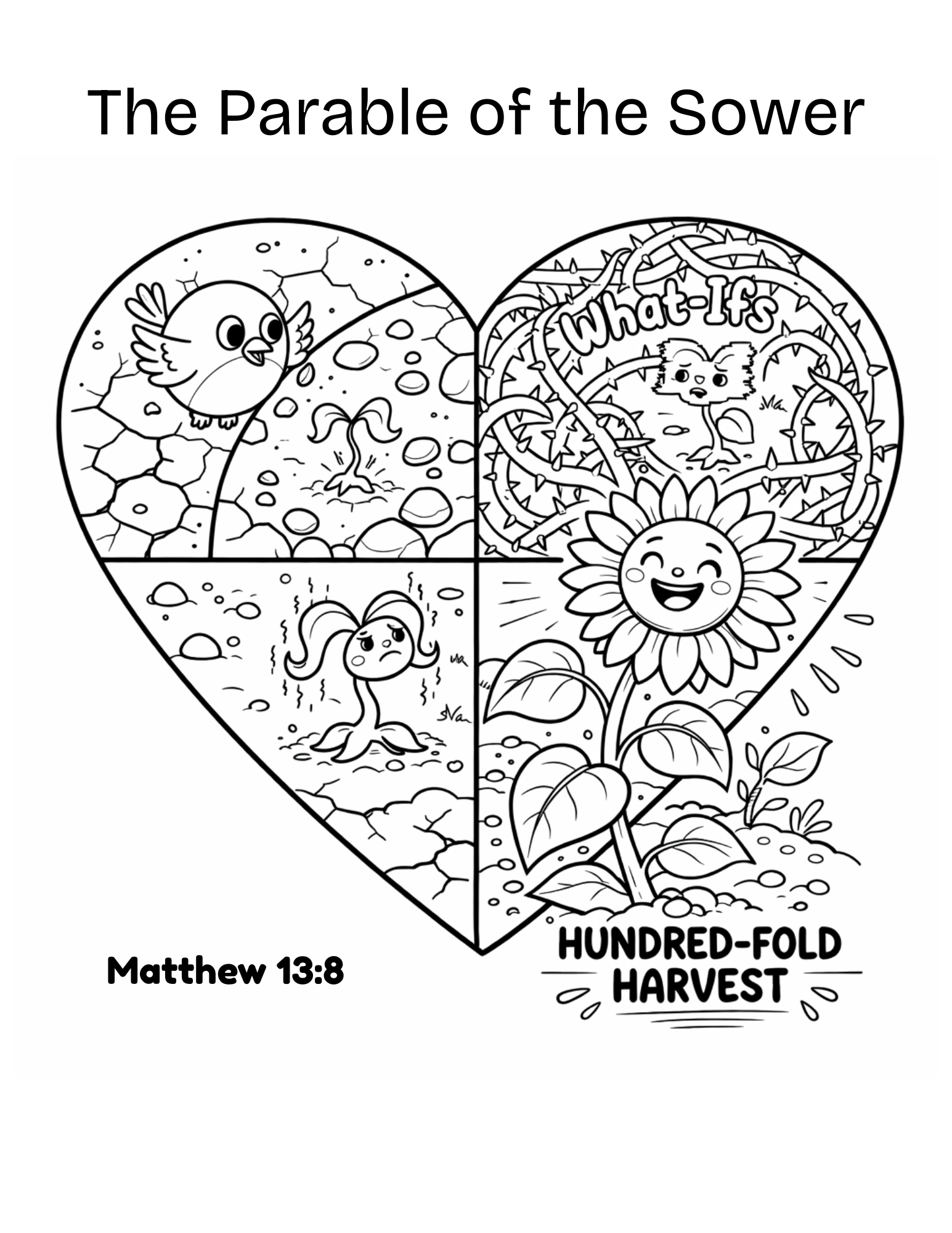 • Coloring Page: A detailed “Parable of the Sower” coloring sheet featuring the four types of soil.