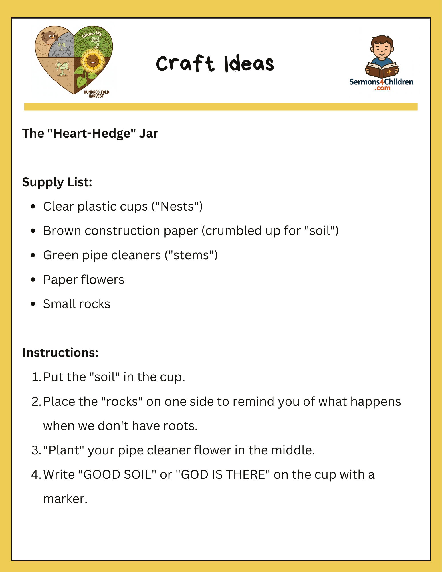 • Creative Craft: The “Heart-Hedge” Jar supply list and instructions.